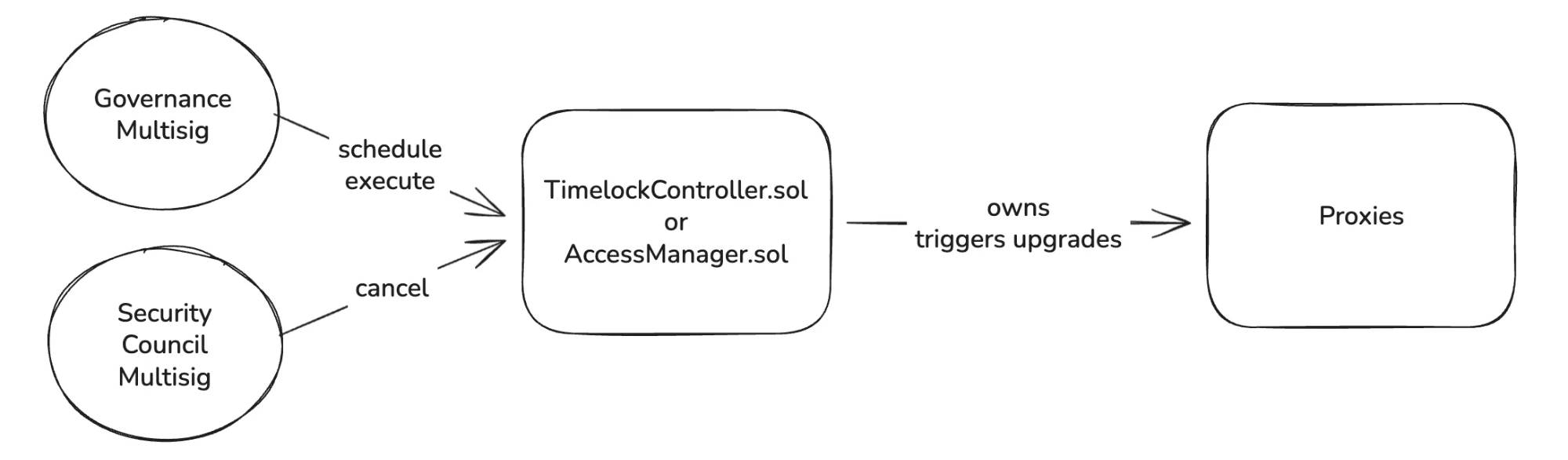From an execution perspective, all of these actions are carried out through Gnosis Safe multisig wallets. Two multisigs are central to this process: the Governance Multisig and the Security Council Multisig. These multisigs operate in close coordination to ensure that every parameter update, configuration change, or code upgrade is performed smoothly and securely.